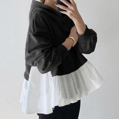【韓国の人気爆発】 フリル飾り フード付き 切り替え トップス パーカー レディース