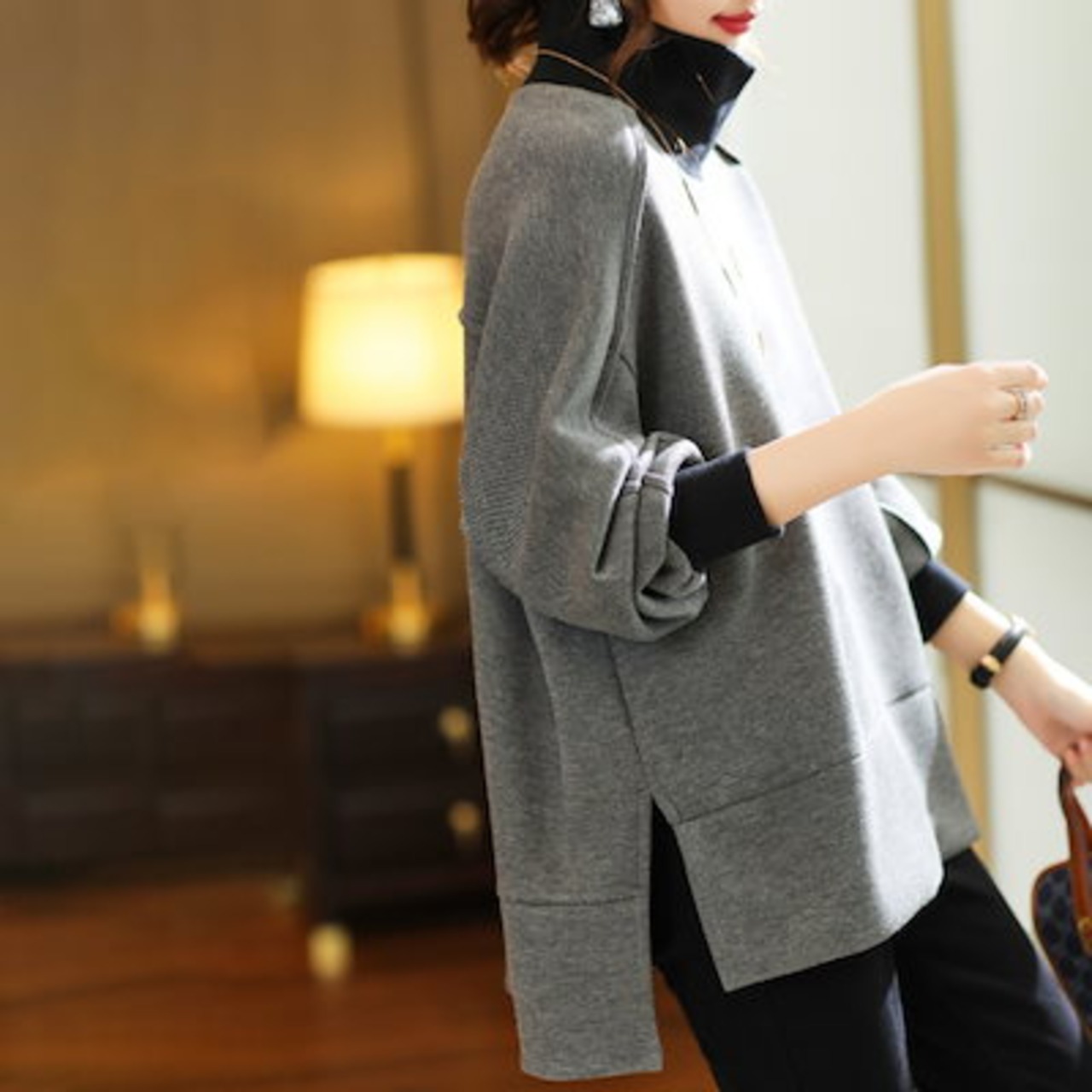 【一枚で視線を奪う】 フェミニン 混色 ハイネック 防寒 切り替え パーカー 秋 冬 レディース