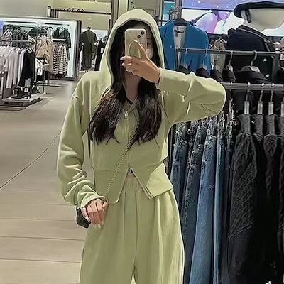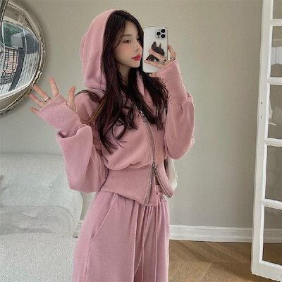 2024新作 カジュアル セットアップ レディース パーカー スウェット 運動 ワイドパンツ 二点セット 着痩せ 大きいサイズ 裏起毛ファッション2