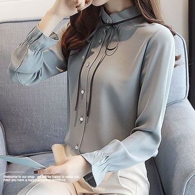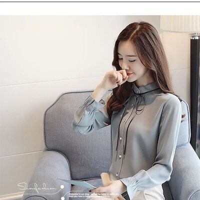 2024 春 新作 ゆったり 立ち襟 蝶結び 長袖 シフォン シャツ オフィス ブラウス レディース スリム見え 気質 トップス