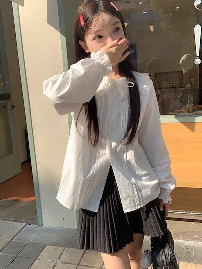 2024春夏 トップス 甘め シャツ 薄手 長袖 丈短め スリム かわいい おしゃれ 大人っぽい襟カジュアルカラー きれいめ 夏 カラー ネックファッションフレンチお出かけ