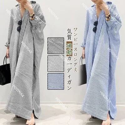 【本日限定】レディース シャツワンピース 綿麻 ストライプ柄 カーディガン ゆったり ブラウスワンピース 夏 通勤 スリム見え アウター
