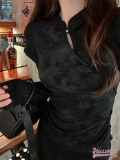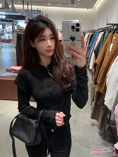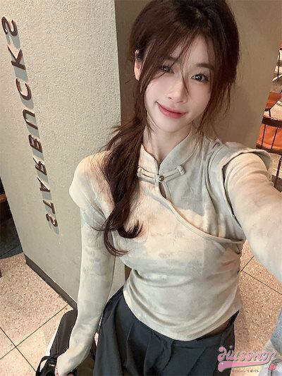 2024春夏 長袖Tシャツ女性春レトロデザイン ディスクバックルセンススリムボトムシャツシックショートトップス