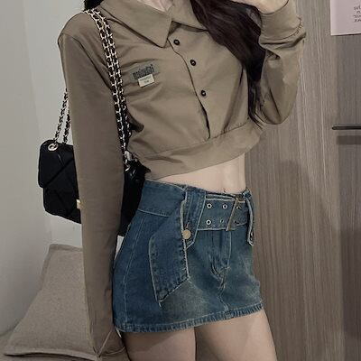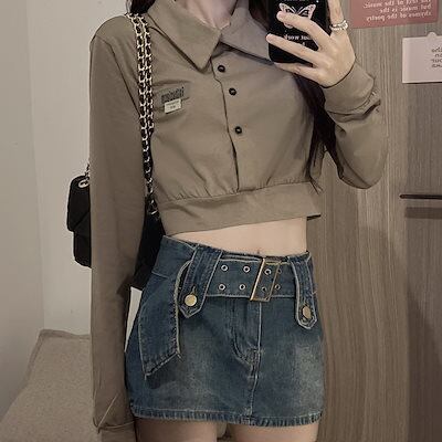 春レディース トップス 港風 おしゃれ 気質 ウエスト引き締め 韓国ファッション 人気 カジュアル シャツ スリム見え