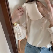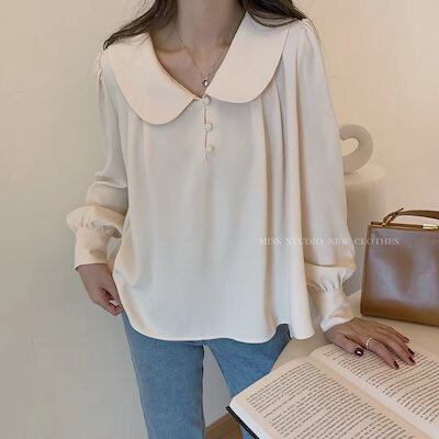 レディース シャツ 長袖 優しい デザイン スタイル ドールネック 若見え スリム見え 春夏新款 シフォン トップス シャツ