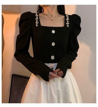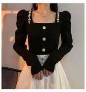 フレンチヴィンテージ 長袖 シャツ レディース 春新作 宮廷風 バブル袖 ウエスト引き締め スリム見え デザイン トップス
