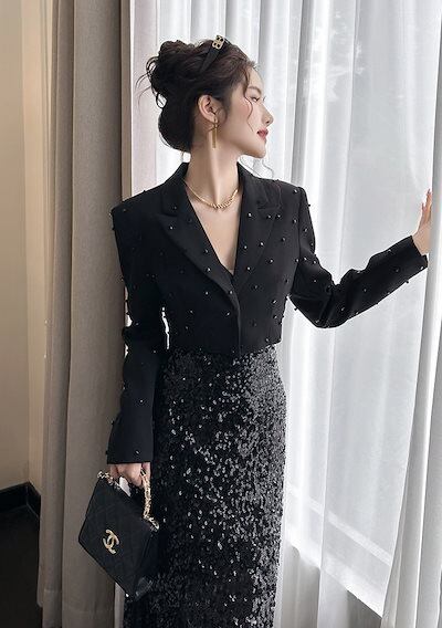 【JY.上品】 2024秋冬 ショートスーツ トップス スリム スーツコート レディース スーツジャケット アウター パーティー キャバ 大人 同窓会 披露宴 卒業式 結婚式 演奏会 ウェディング 二