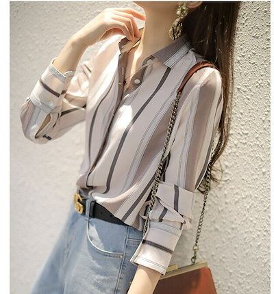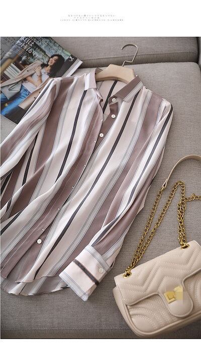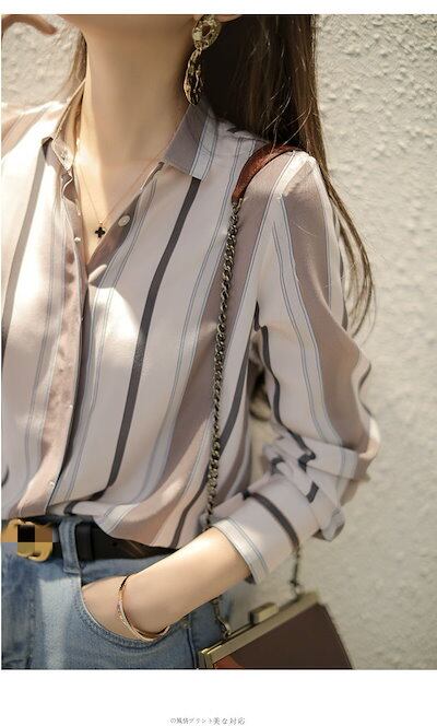 長袖ブラウス韓国トップス シャツ ブラウス レディースストレッチスリムブラウス 通勤ストライプシャツロンTシアーシャツTシャツ