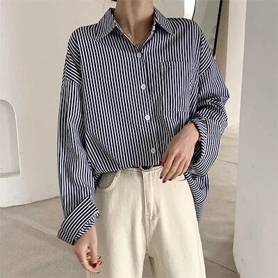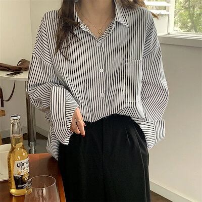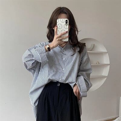 品質いいな新品 ブラウス レディース 理想的な一着を手に入れる!韓国ファッション 春 新品 2023 ゆったりする ストライプ シャツ カジュアル 韓国版 百掛け 長袖 シャツ スリム BF風 気質