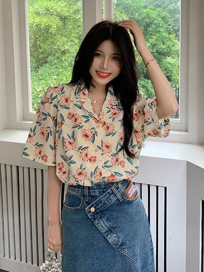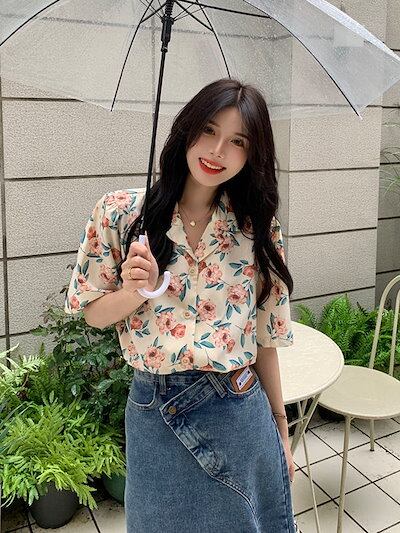 レトロ花柄シャツレディース 夏新作 デザイン ゆったり 外着 日焼け止め スリム半袖トップス