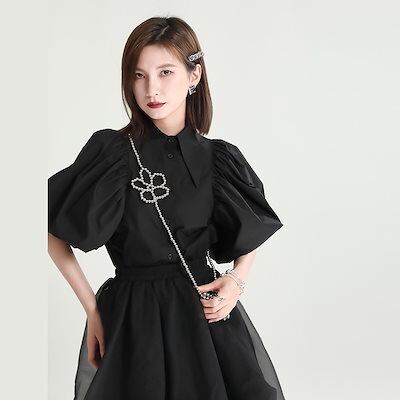 フリル袖 ブラウス おしゃれ襟 スリム シャツTシャツ レディース ファション ブラウス