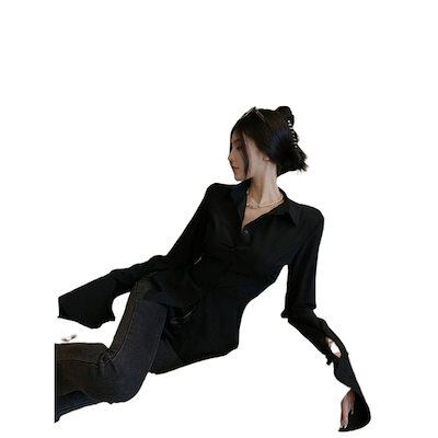 シャツ ブラウス レディース トップス今っぽシアーシャツ ファッション女性秋の新しいネクタイウエストシャツ百スリムシャツ