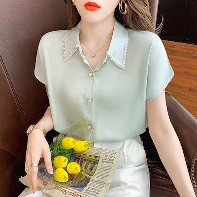 今っぽシアーシャツ 通勤 半袖シフォンシャツ24新作フレンチスリム トップス レディース 韓国ファッション