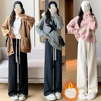 ワイドパンツ 裏起毛パンツ スウェットパンツ コーデュロイ 韓国ファッション 着痩せ 裏起毛パンツ レディース ロングパンツ ゆったりスウェット スキニーパンツ