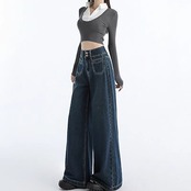 レディース デニムパンツ ジーンズ ガウチョパンツ ワイドパンツ 春秋 カジュアル スウェットパンツ パンツ