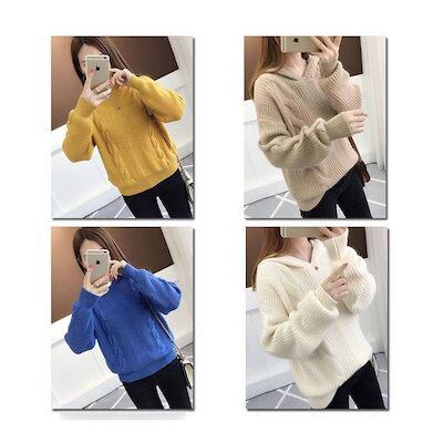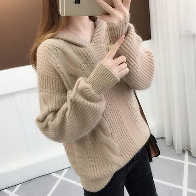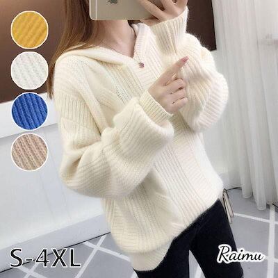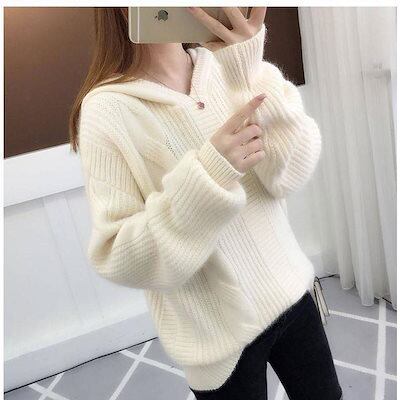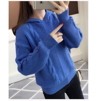 パーカーセーター レディース ニットタイド ゆったり 韓国風 フード付き 長袖 コーデ タイドシャツ プルオーバー レトロ ケープル編み オシャレ 通学 通勤