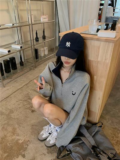 2024 秋冬 トレンド トップス長袖 かわいいK-POPTロング_白レディース韓国風ロゴ衣装カラールーズゆったりカジュアルハーフおしゃれサイズスリーブシルエットファッション系サイドシャツフット春
