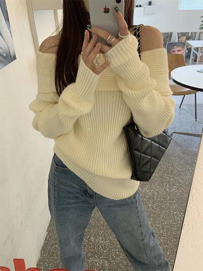 2024秋冬トップス 長袖 ニット レディースショートおしゃれ カラバリ肌見せカラーシンプルスタイルアッププル色っぽ 女っぽ カジュアル きれいめ 大人ネックファッション加工フェミニン秋冬春系