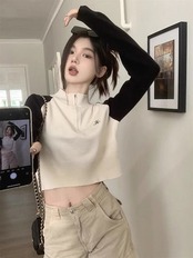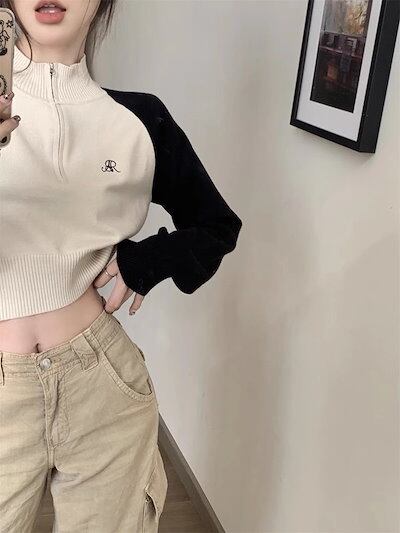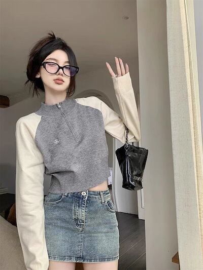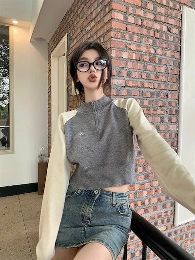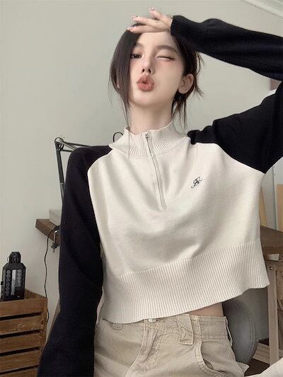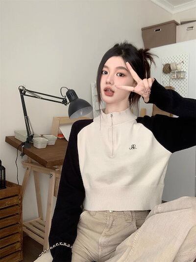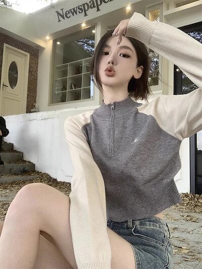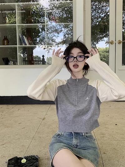 期?限定 トップス 長袖 ニット セーター レディース ショート おしゃれ カラバリハーフカラースタイルアップ 色っぽ 女っぽ カジュアル きれいめ 大人 ネック ファッション フェミニン 秋 冬 春