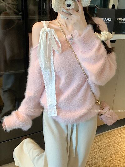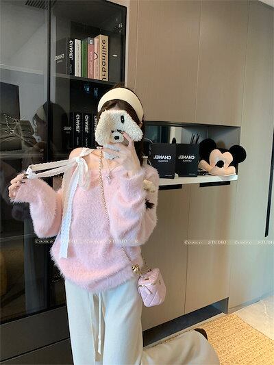 2024秋冬トップス 長袖 ニット セーター レディース ショート おしゃれ韓国ロンT色っぽ 女っぽ 春スタイルアップカジュアルきれいめV大人ファッション加工フェミニン シルエットかわいいサイズ