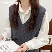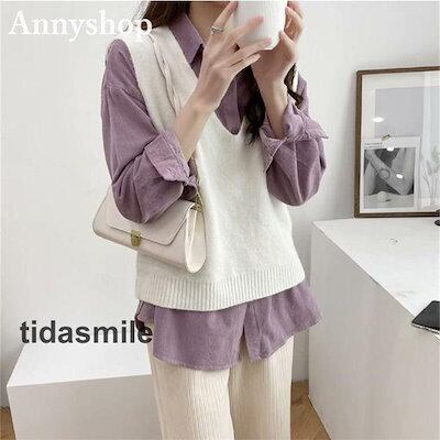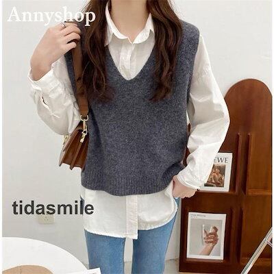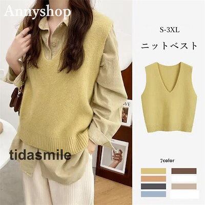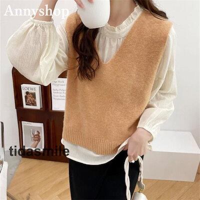 ニットベスト レディース Vネック 無地 トップス プルオーバー 重ね着 ノースリーブ 大人 シンプル ゆったり 着痩せ オフィス 春 秋 冬 韓国ファッション
