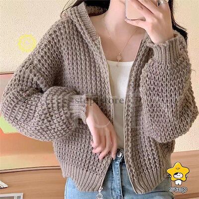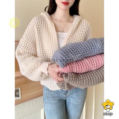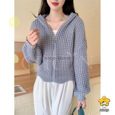 パーカー ニットパーカー レディース 長袖 秋 秋服 カーディガン トップス 春秋冬 フード付き ジッパー 羽織着痩せ無地ショート丈カジュアルおしゃれ韓国風