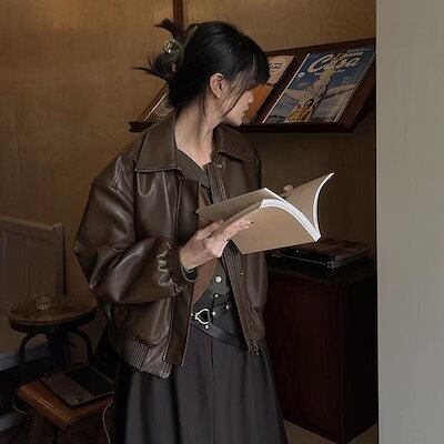 アウター 2024春と秋 バイクレザージャケット 短い レトロ トップス レザージャケット アウターウェア レディース 韓国