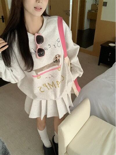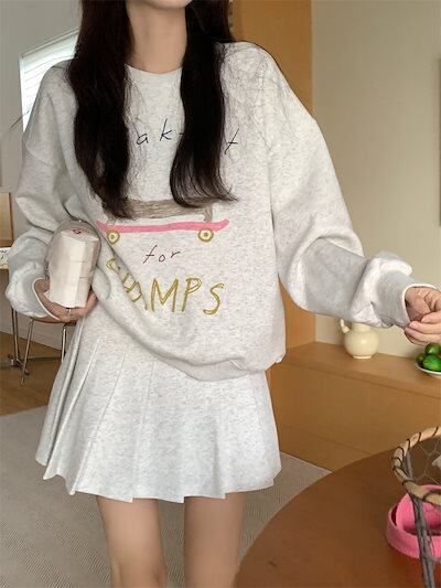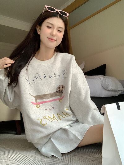 2024 秋冬 トレンド トップス 甘辛MIX 長袖 かわいいTシャツレディース韓国風 衣装 ルーズ ゆったり カジュアル おしゃれサイズスリーブ シルエットファッション系サイドシャツ フット春