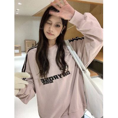 2024 秋冬 トレンド2type 裹起毛トップスバイカラー長袖 かわいいK-POPTロング_レディース韓国風ロゴ衣装ルーズゆったりカジュアルおしゃれサイズスリーブシルエットファッション系サイド春