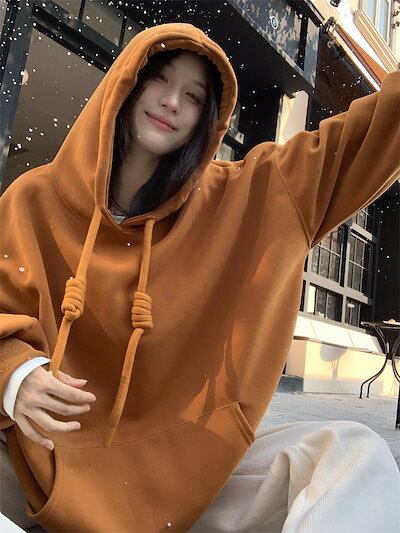 2024秋冬 選べる2タイプ 厚手 裹起毛 パーカー フード付き羽織りスタイルアップ女っぽ きれいめ 大人っぽ 上品 サイズゆったりカジュアルストリートシルエットスリーブ通学学生ファッション系春
