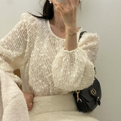 2024 秋冬ブラウス レディース 韓国 春 秋 冬 白 ホワイト 長袖