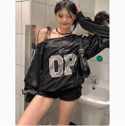 2024 秋冬 トップス 長袖 かわいいラウンドネック Tシャツ レディースロンt 韓国風ロゴ衣装ルーズゆったりカジュアルおしゃれサイズスリーブシルエットファッション系サイドシャツフットスウエット春