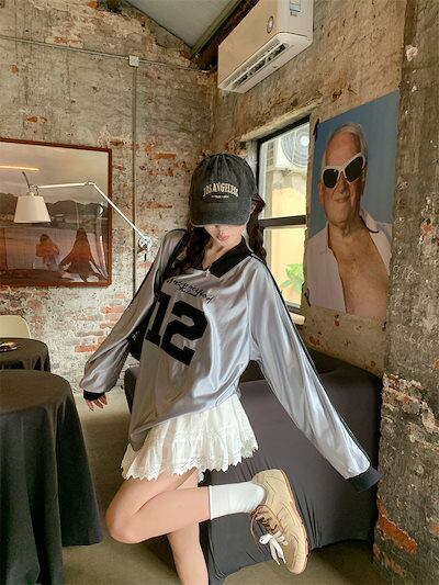 2024 秋冬 トップス 長袖 かわいいラウンドネック Tシャツ レディース 韓国風 12ロゴ衣装ルーズ ゆったりカジュアルおしゃれサイズスリーブシルエットファッション系サイドシャツフットスウエット春