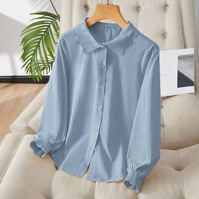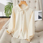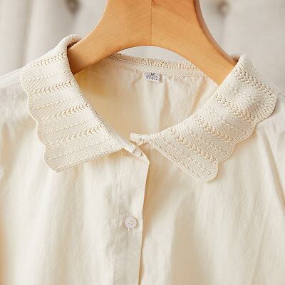 今っぽシアーシャツ 長袖 2024春純綿シャツアンズ色レースレース襟シャツ女 韓国 ブラウス レディースファッション カーディガン オフィス シャツ