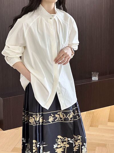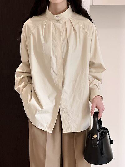 【人気商品】韓国 今っぽシアーシャツ 2024春スタンドカラーゆったりシャツ 長袖 ブラウス レディースファッション オフィス カーディガン