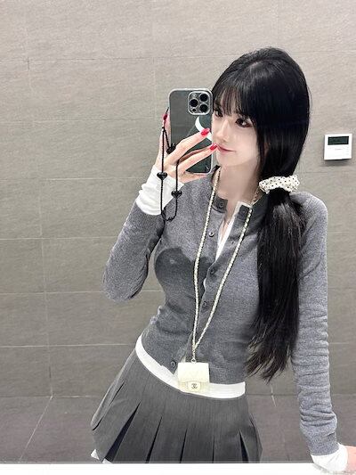 涼しく楽ちんセットアップ 3点セット 2024年の春と秋 カレッジスタイル デザインセンス スリム ニットカーディガン インナーウェア トップス ハイウエスト スカート韓国