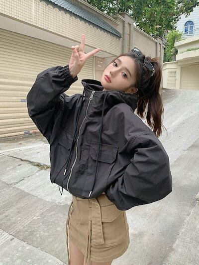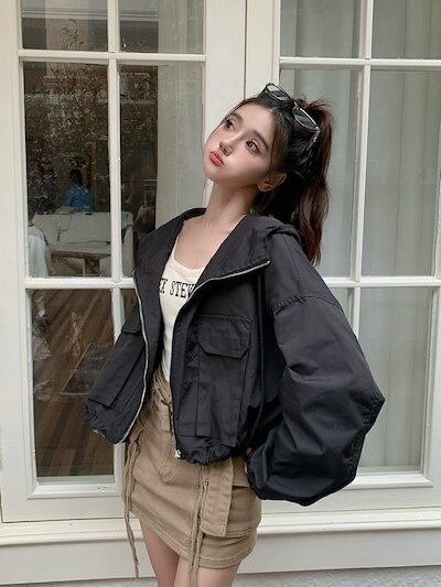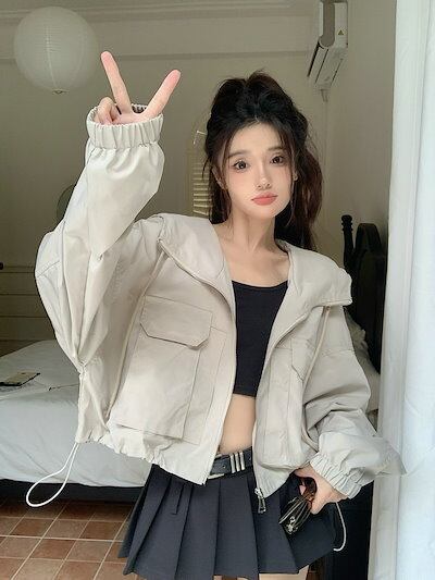 2024春夏 ショート かわいい フル ブルゾン トップスアウター ショート丈 スタンドショートお出かけハイストリートアウター長袖セクシートップスカジュアルファッションお出かけ 秋トラック