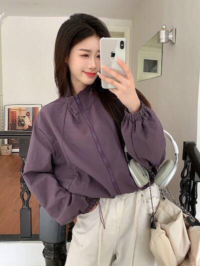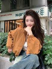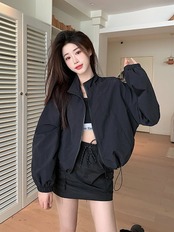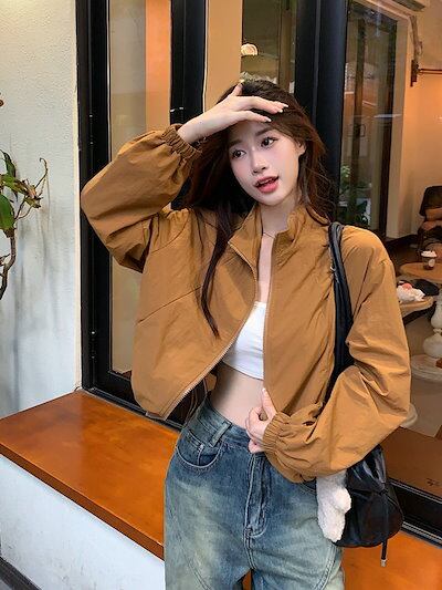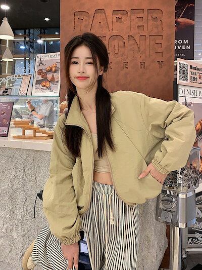 2024春夏 ショート かわいい フル ブルゾン トップス アウター ショート スタンドショート お出かけハイストリートアウター長袖セクシートップスカジュアルファッションお出かけ 秋トラック