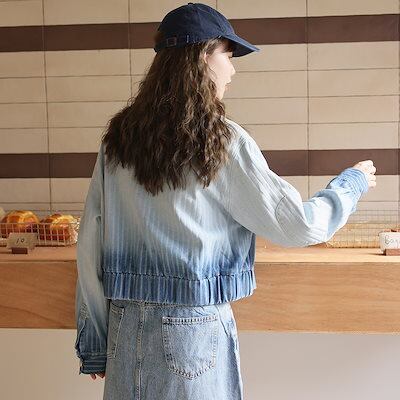 コーデに役立つ!デニムジャケット レディース 2024春の韓国ゆったりデニムショートジャケット女性のグラデーションストライプ 韓国ファッション