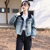 韓国 デニムジャケット レディース 新中式上着2024春の新型ぶつかり色ショート丈ジャケット トップス アウター