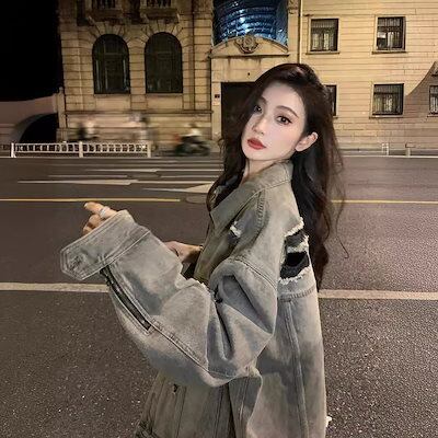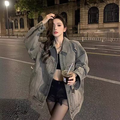 コーデに役立つ!デニムジャケットレディース春2024新作ゆったり穴あきカーディガン デニムジャケット レディース 韓国ファッション