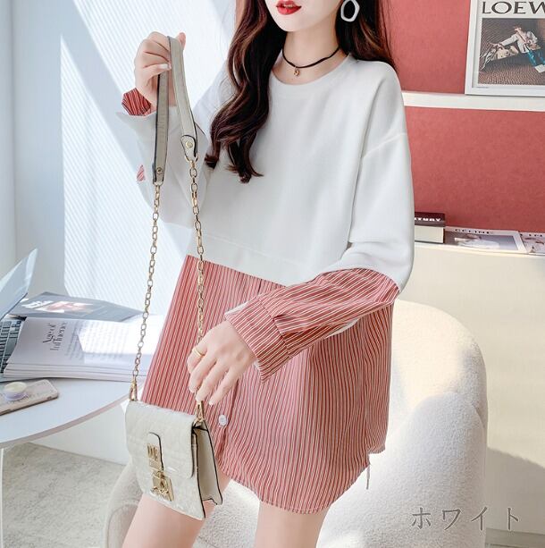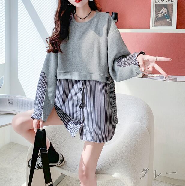 スウェット トレーナー フェイク 切り替え バイカラー 体型カバー 着痩せ カジュアル パーカー カットソー レイヤード 重ね着風 配色