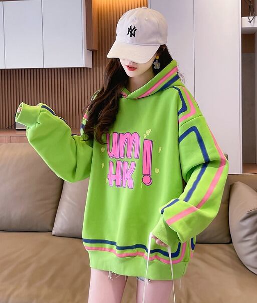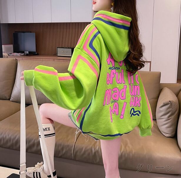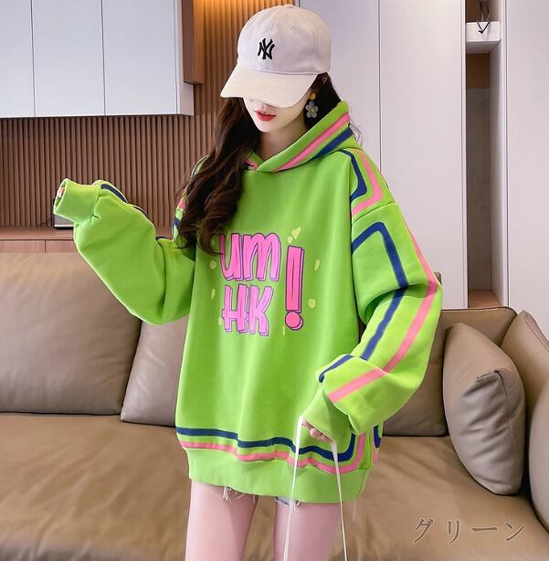 全2色 スウェット トレーナー 長袖 切り替え バイカラー 体型カバー 着痩せ 帽子付き 【大きいサイズあり】