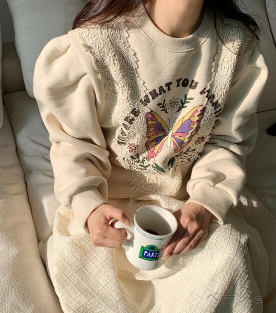 スウェット トレーナー プリント 切り替え バイカラー 体型カバー 着痩せ カジュアル