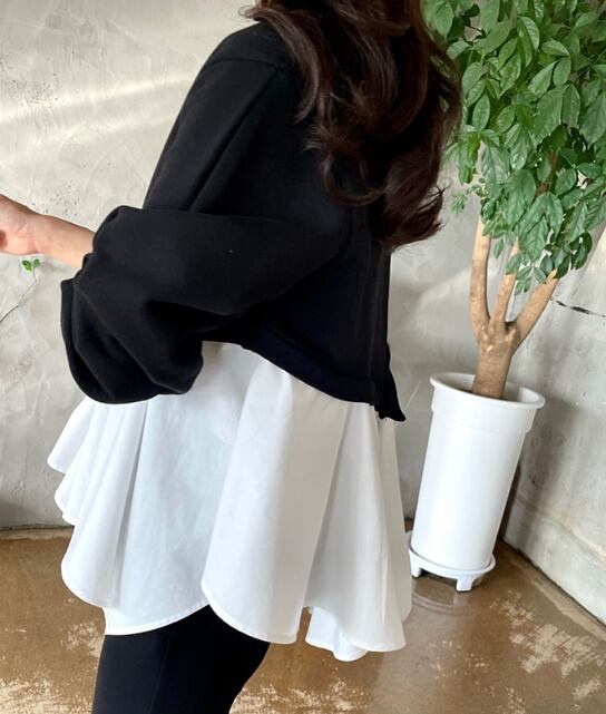 全2色 スウェット トレーナー フリル 切り替え バイカラー 体型カバー 着痩せ シンプル