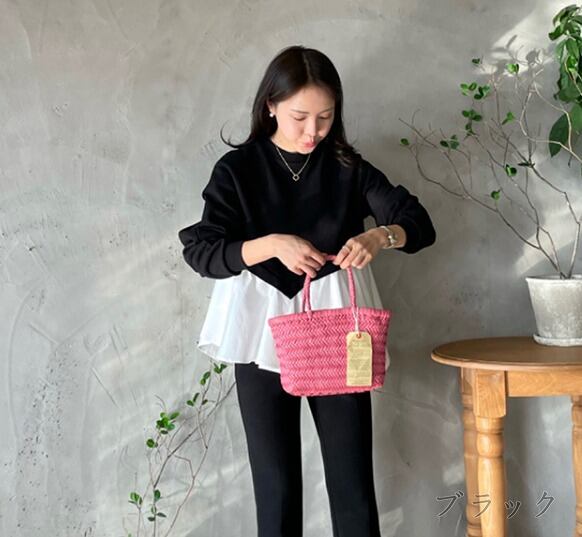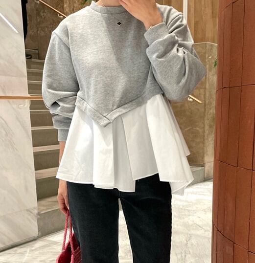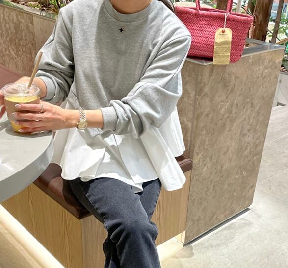 スウェット トレーナー フリル 切り替え バイカラー 体型カバー 着痩せ シンプル パーカー カットソー 配色