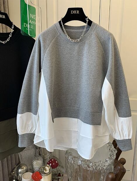 全2色 スウェット トレーナー 切り替え バイカラー 体型カバー 着痩せ 【大きいサイズあり】 カジュアル