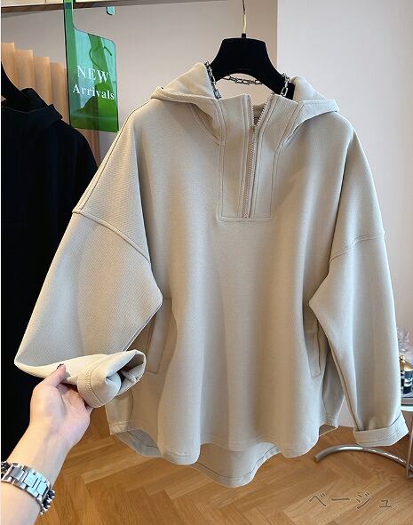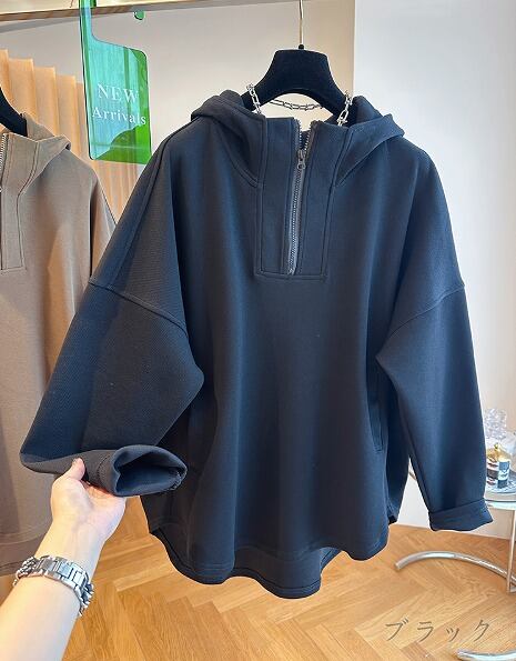 全3色 スウェット トレーナー 切り替え 体型カバー 着痩せ 帽子付き 【大きいサイズあり】
