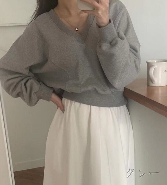 全2色 スウェット トレーナー 切り替え 体型カバー 着痩せ シンプル