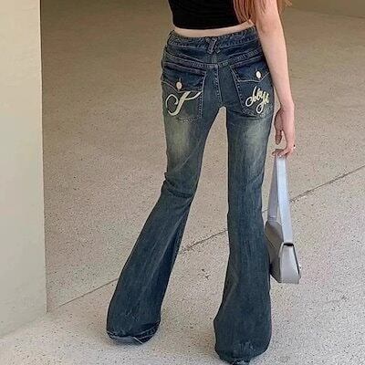 ジーンズ ロングパンツ デニムパンツ フレアパンツ gパン ローライズ 刺繍 ストレッチ レトロ ボトムス レディース カジュアル 長ズボン ファッション
